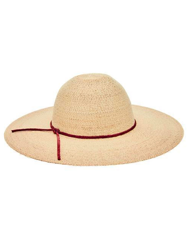 Stay covered and stylish in this palm straw sunbrim hat with leather trim.